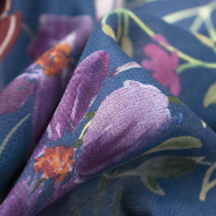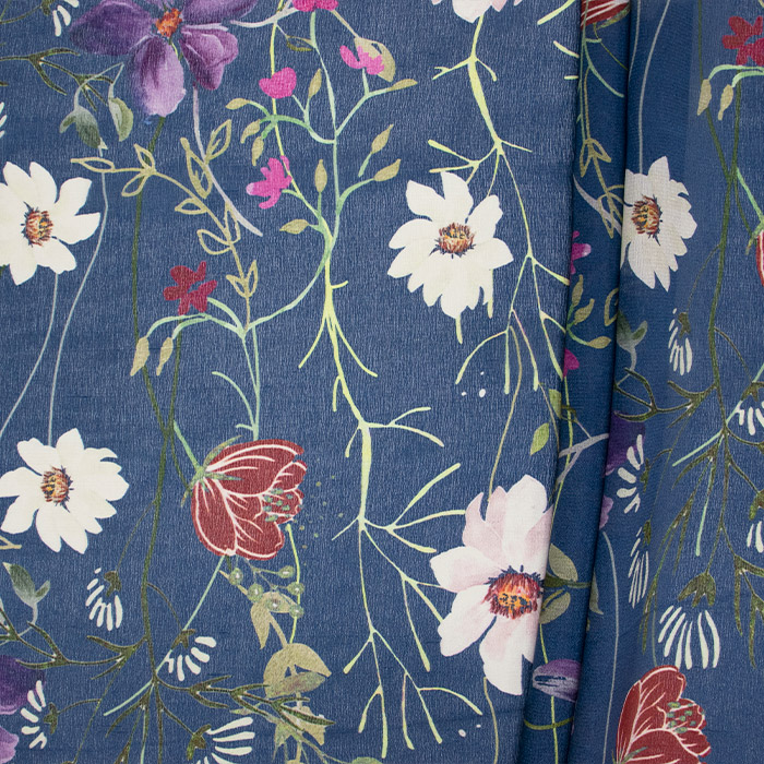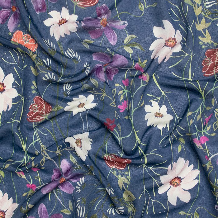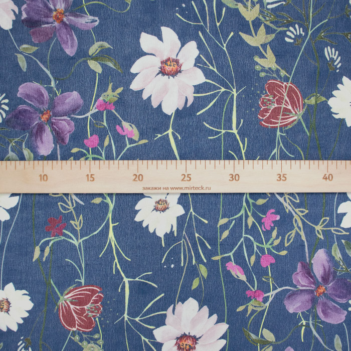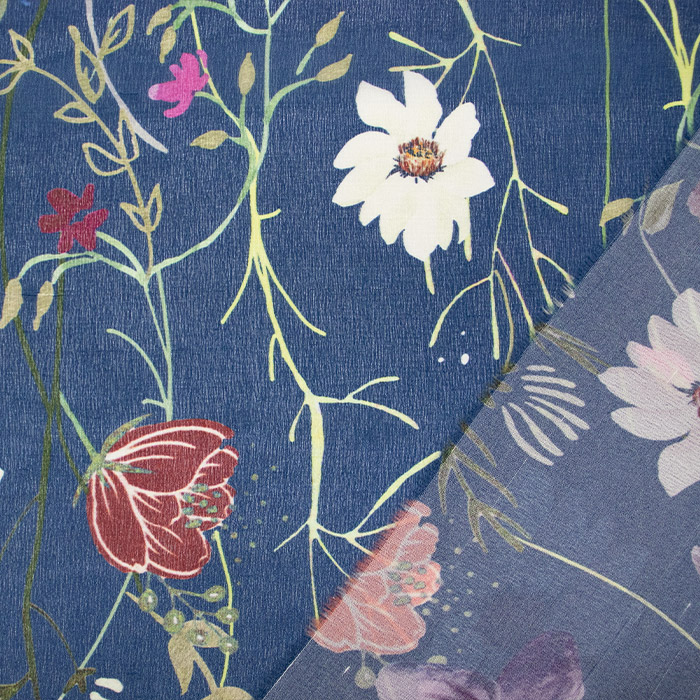 ШЕЛК КРЕП НАБИВНОЙ ш140 100%шелк (цветы/синий фон)