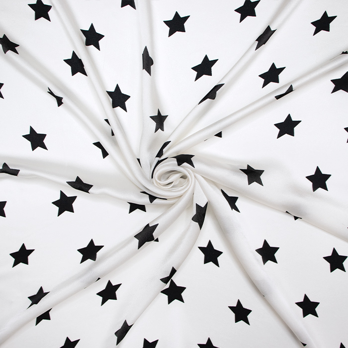 ШЕЛК АТЛАС НАБИВНОЙ ш135 100%шелк (звезды/белый фон)