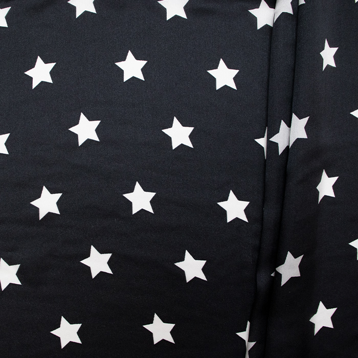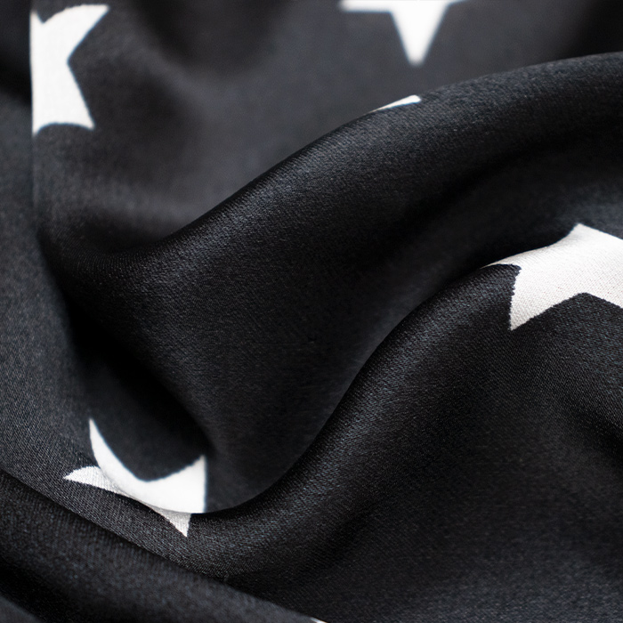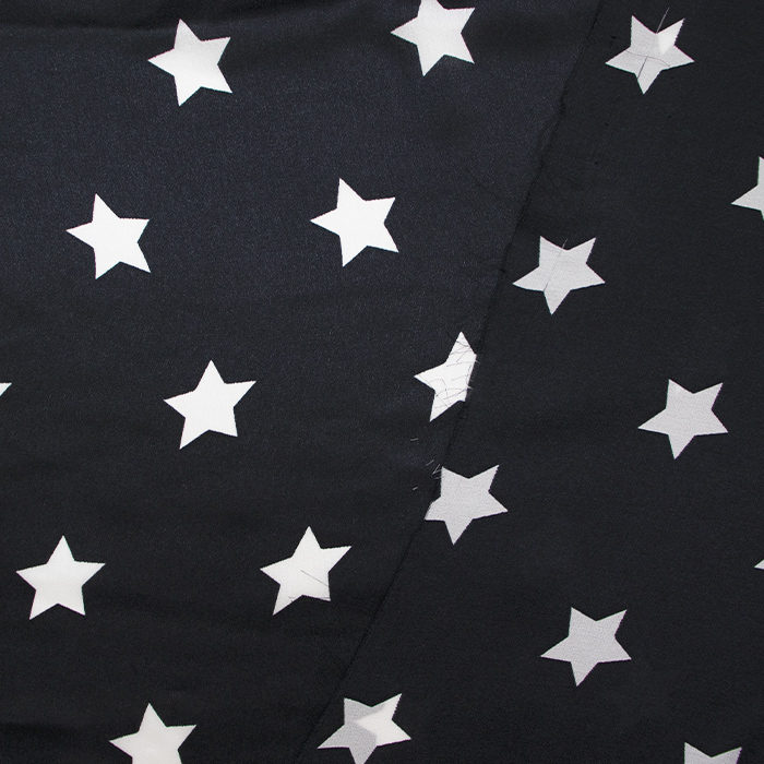 ШЕЛК АТЛАС НАБИВНОЙ ш135 100%шелк (звезды/черный фон)