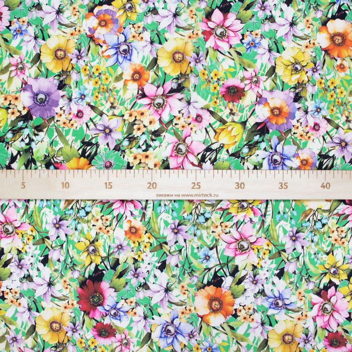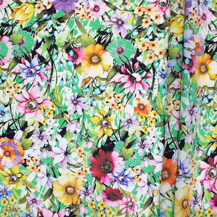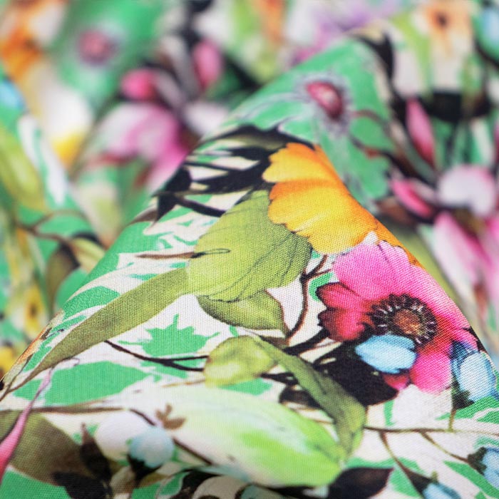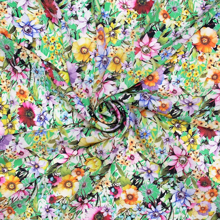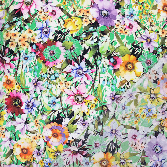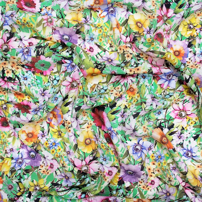 ШЕЛК КРЕП НАБИВНОЙ ш135 98%шелк 2%эл (цветы/св.зеленый фон)
