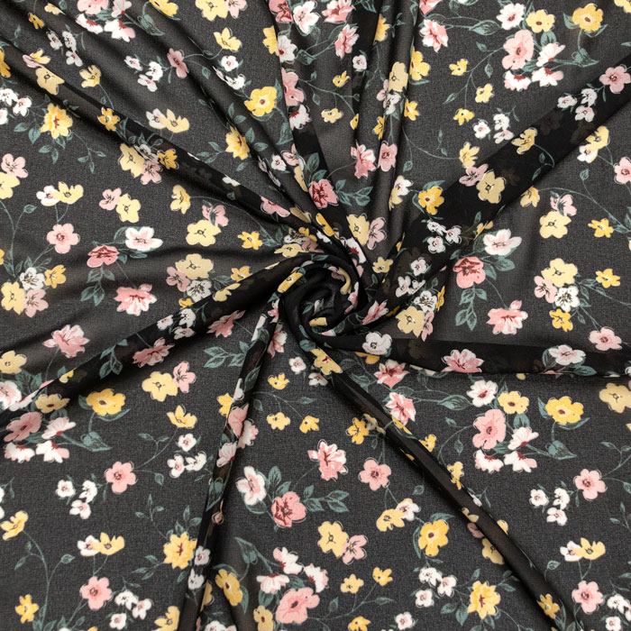 ШИФОН ЖОРЖЕТ НАБИВНОЙ ш150 100%пэ (желтые/персиковые цветы)