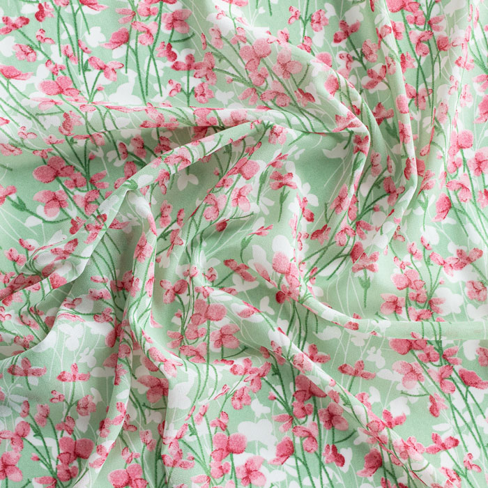 ШИФОН ЖОРЖЕТ НАБИВНОЙ ш150 100%пэ (цветы/св.зеленый)