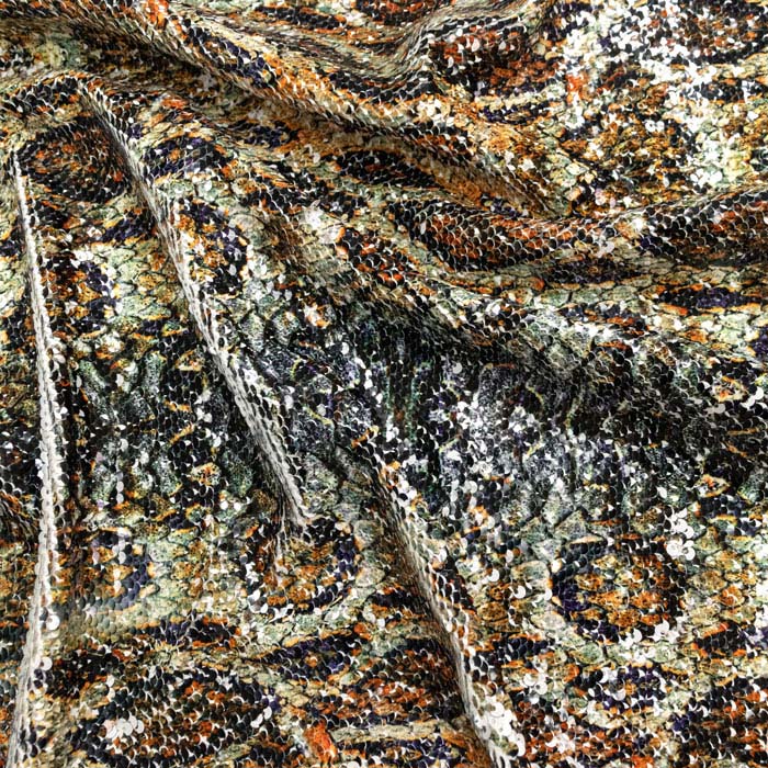 ТРИКОТАЖ ПАЙЕТКИ ш120 97%пэ 3%эл (рептилия/бежево-коричневый)