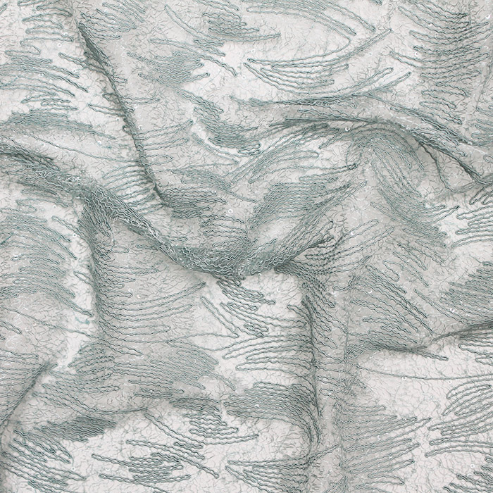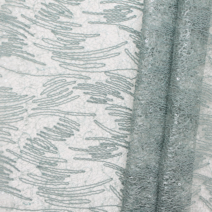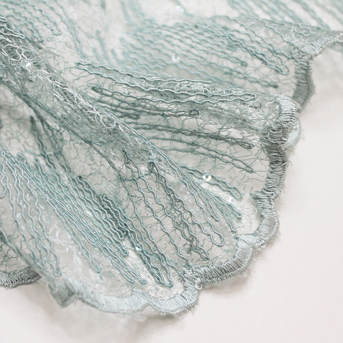 Кружево КОРД представляет собой однотонное сетчатое полотно с вышивкой тонким шелковистым сутажным шнурком и мелкими пайетками диаметром 3 мм в тон полотну. Кружевное полотно безупречно подойдет для пошива воздушного коктейльного, свадебного и вечернего платья, а также нижнего белья (бюстгалтера и бюстье).